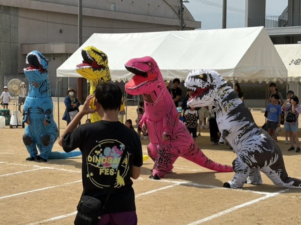 カラフルな“恐竜”たちが全力疾走する光景は、思わず笑顔がこぼれるほどインパクト抜群。