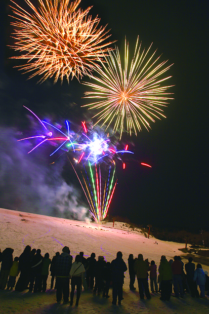最後には約1,500発の花火が夜空と雪面に反射し、