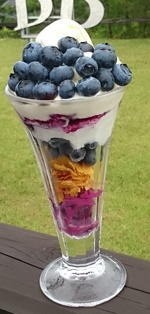 併設している農園カフェでは、ブルーベリースイーツの販売もしております。
