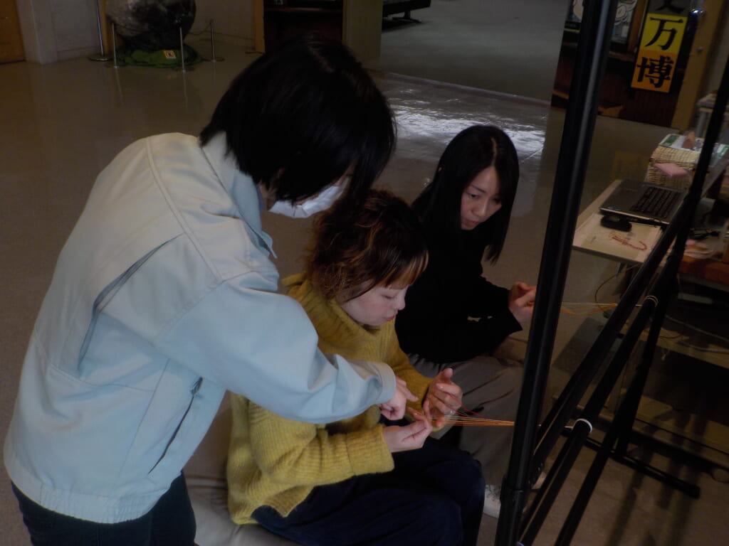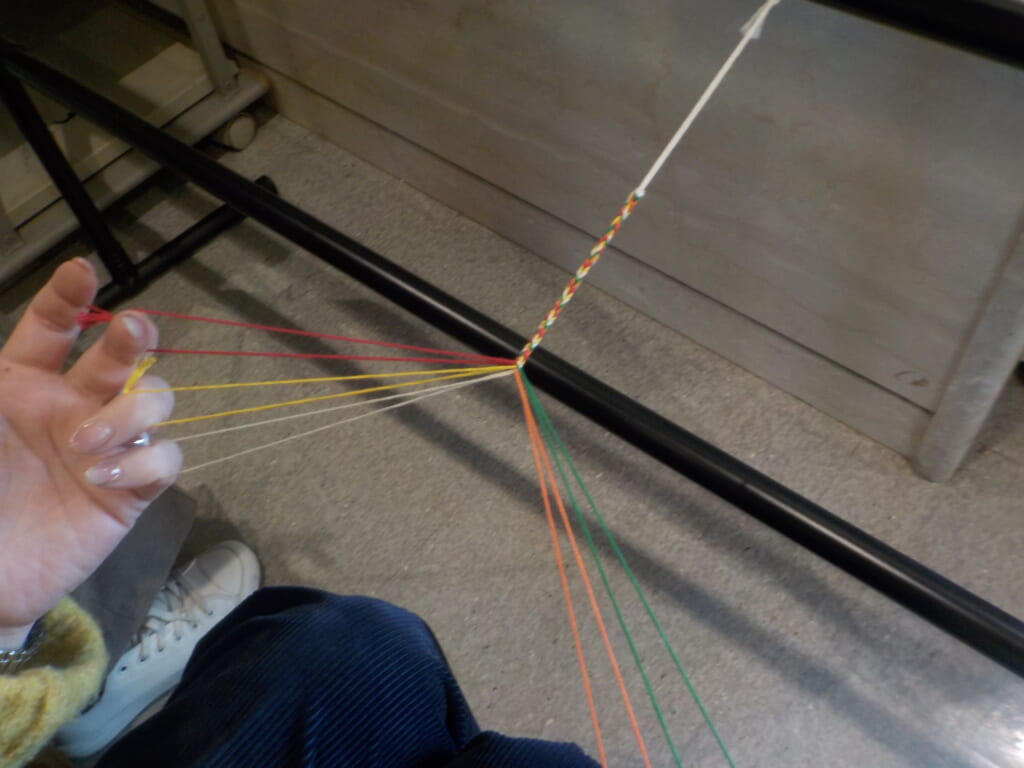 色糸を組み合わせて作る組ひもは、ストラップにもできる“持ち帰れる体験”に。