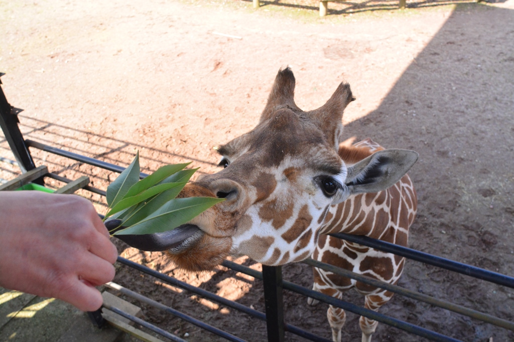 キリンに木の葉をあげたり、オオカミにお肉をあげたり。