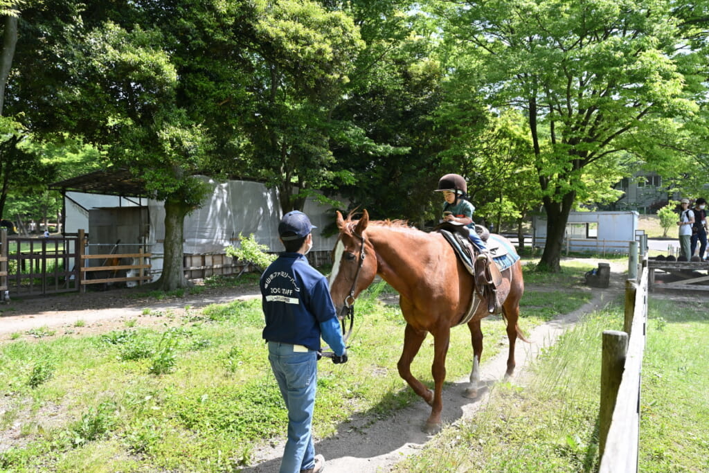 自然の中をゆっくり歩く乗馬体験では、馬のぬくもりを感じながら、開放感あふれるひとときを。
