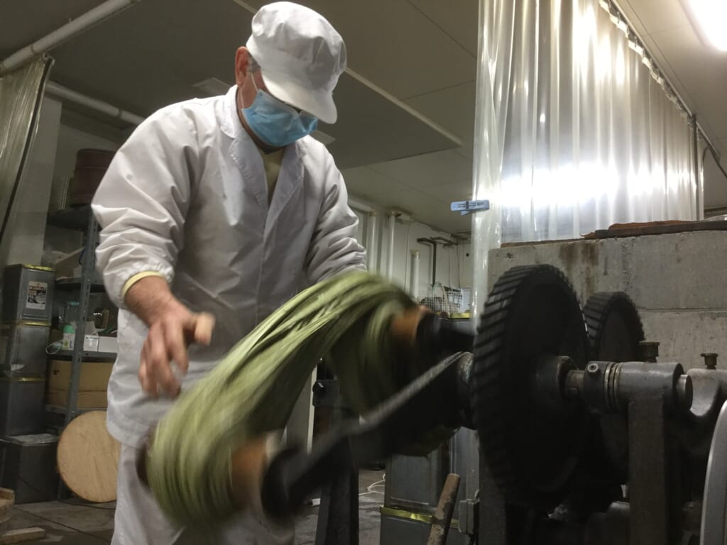 体験では、炊き上げた飴を昔ながらの道具で練り上げ、茶色の飴が空気を含んで金色、そして白へと変わっていく工程を間近で楽しめます。