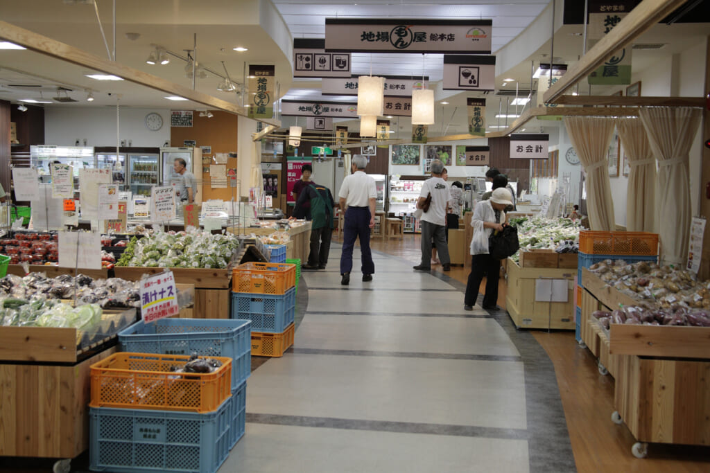 もちろん、店内には朝採れ野菜や旬の果物、手づくりのお弁当・惣菜、山菜、加工品、地酒などがずらり。