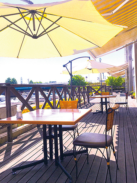 運河を望むテラス席で、目の前に広がる水辺を眺めながらひと息。