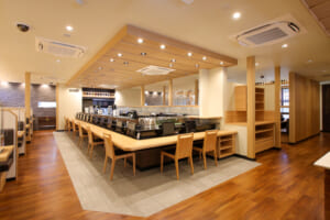 2022年夏にオープンしたばかりの「富山二口店」には職人が目の前で握るカウンター席の他、テーブル席、小上り席も充実。