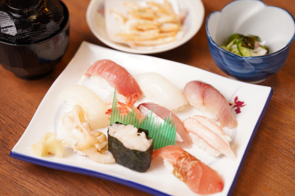 四方漁港のすぐ傍に位置し、四方や岩瀬、新湊を中心に仕入れた、鮮度抜群の旬のネタを味わえます。