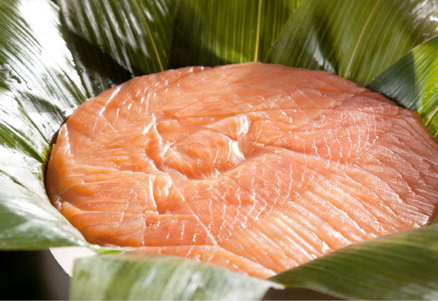 県産コシヒカリの酢飯と鱒・白えび寿しなど多彩な押し寿し。