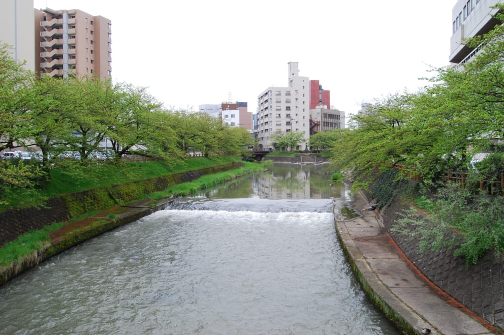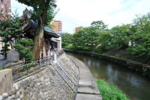 いたち川と石倉町延命地蔵尊 いたち川といしくらまちえんめいじぞうそん
