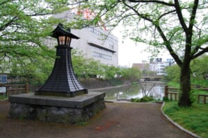 富山市中心部を流れる「いたち川」沿いに佇む「石倉町延命地蔵尊」は、散歩の途中にふっと立ち寄りたくなる小さな癒しスポット。