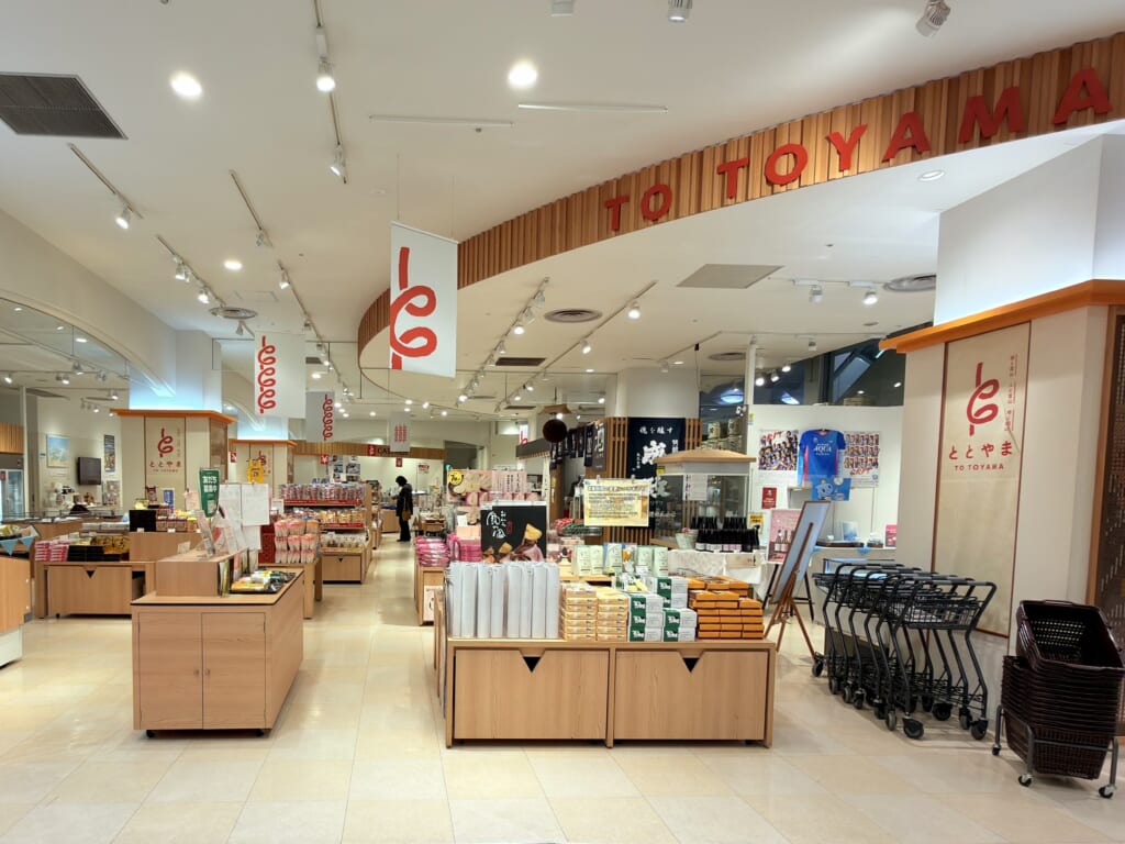 菓子や地酒の定番はもちろん、富山のくすりや工芸品・民芸品まで幅広くラインナップ。