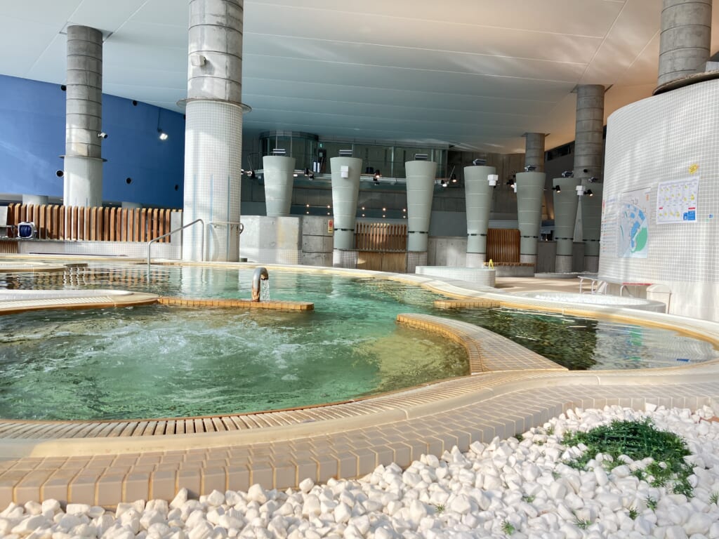 温水プールには、水中ウォーキングなどのプログラムもあり、併設されたバーデゾーンには10種類の浴槽やミストサウナもあります。