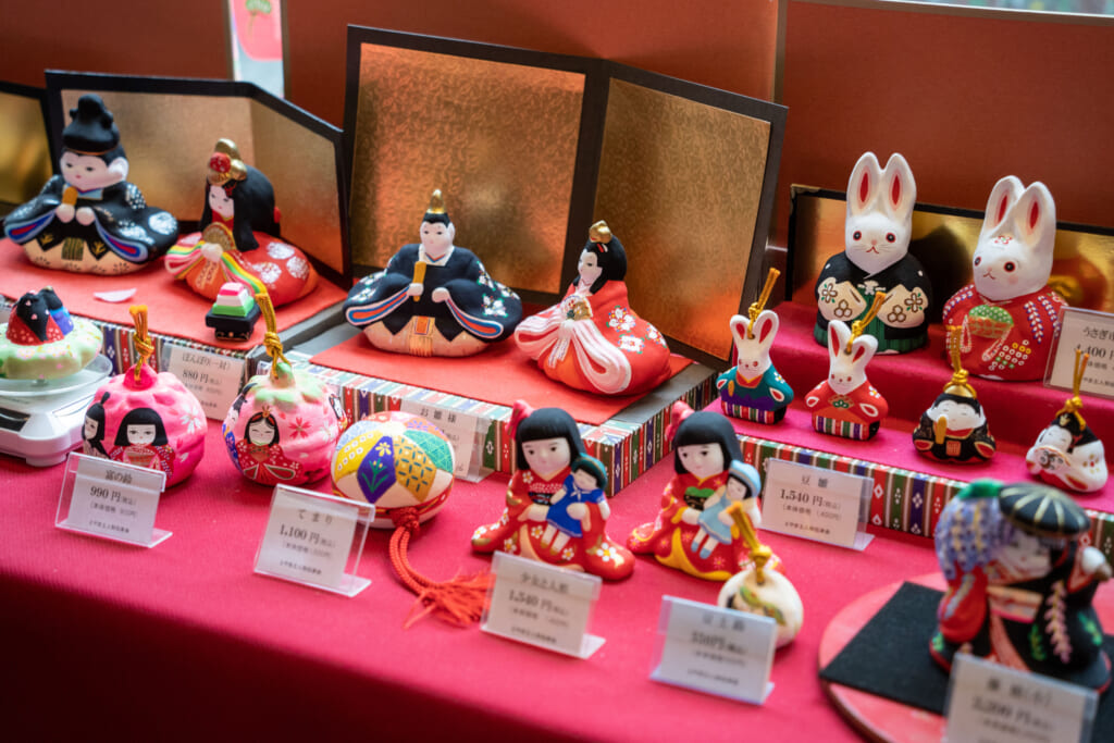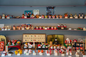 展示・販売コーナーには、学問の神様として親しまれる「天神様」をはじめ、おひな様、薬売り人形、干支の人形など、約60種類・800点以上がずらり。