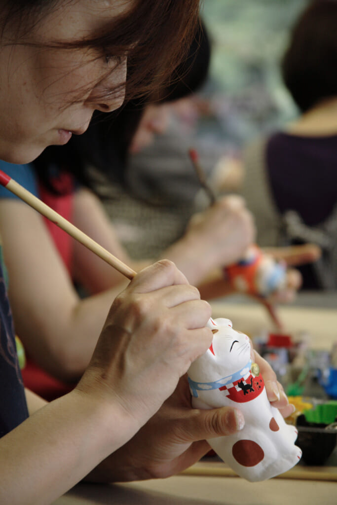 江戸時代から続く素朴でやさしい風合いが特徴の土人形に、自分の手で絵付けができるのが一番の楽しみ。