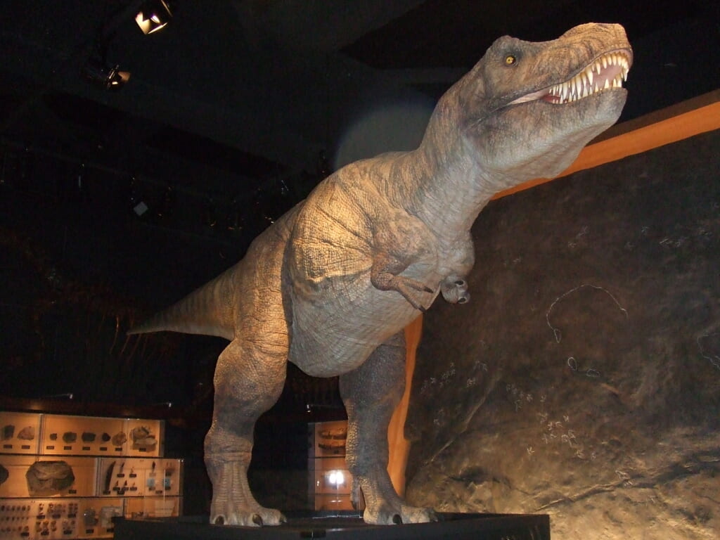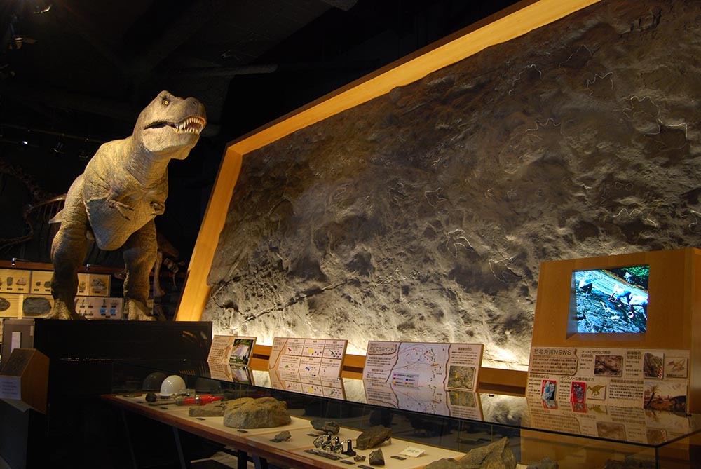 2026年3月の1階リニューアルでは、美しい石や化石をずらっと並べた大人も浸れる展示物や、大型恐竜の骨格標本、大地を学ぶプロジェクトマッピング装置を新設しました。