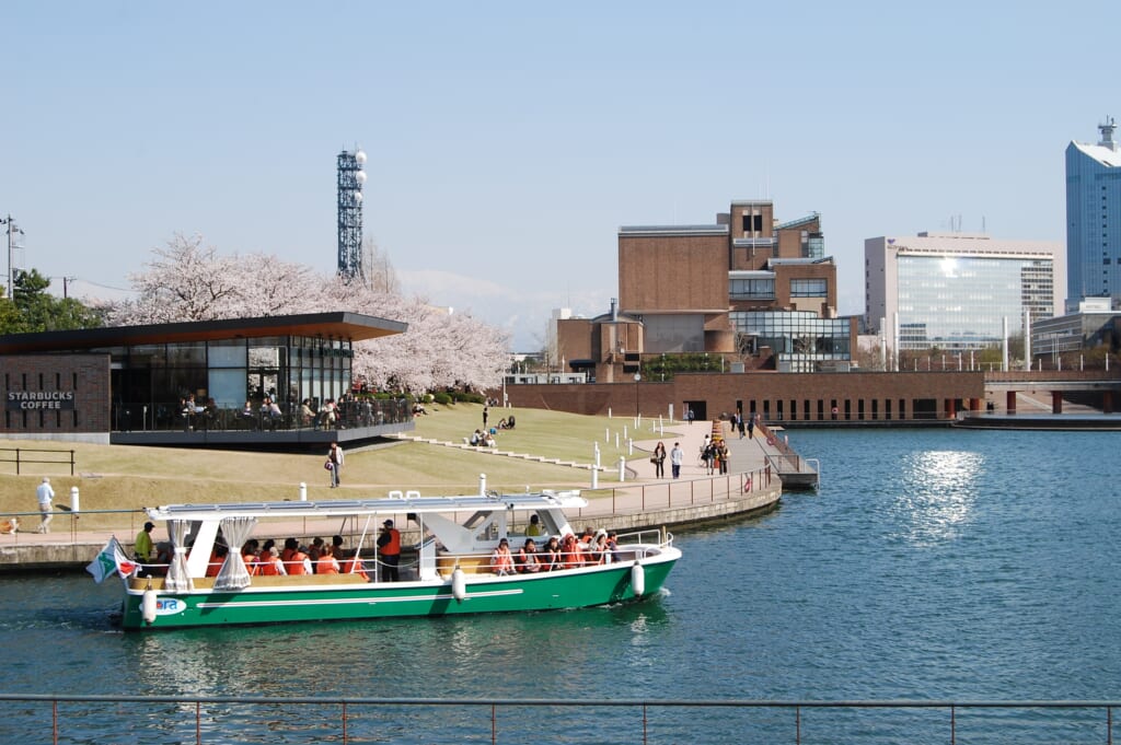 富山駅から歩いてすぐの富岩運河環水公園から乗船できるほか、岩瀬方面から富岩運河環水公園へ向かう便も運航しており、街と港をつなぐ”水上の旅路”を双方向で楽しめます。