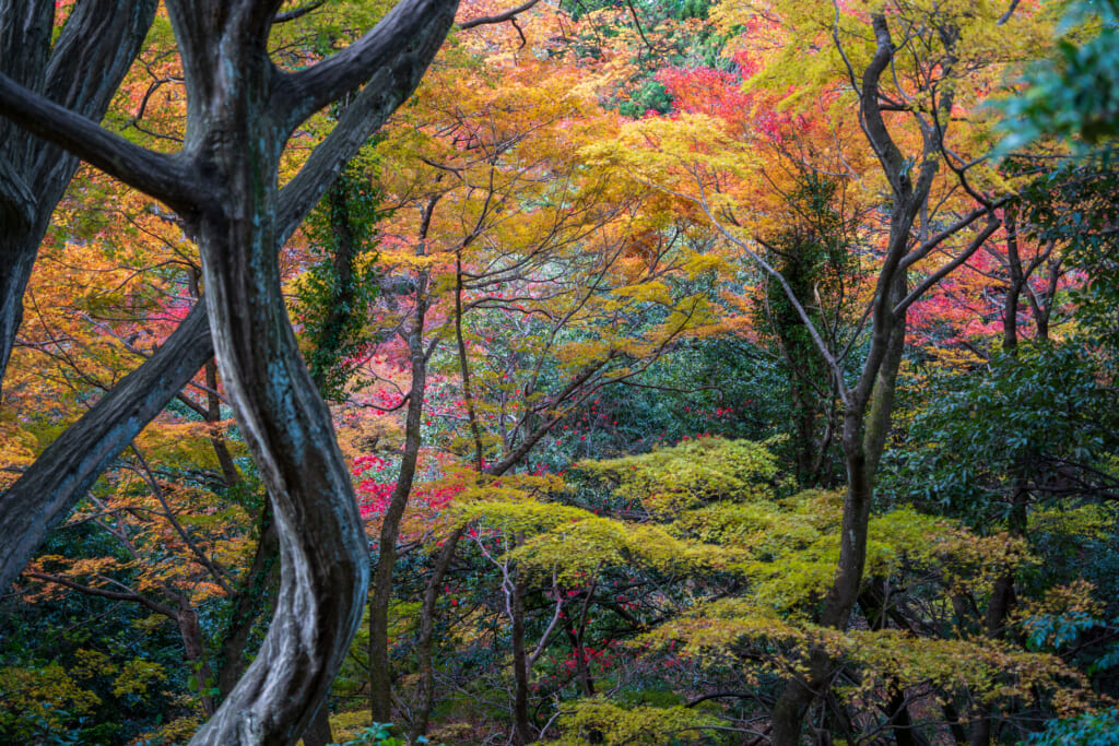 春の新緑や、10月下旬〜11月下旬(年により前後)に見頃を迎える紅葉シーズンには、多くの人が里山散策に訪れる人気スポット。