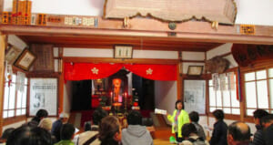 境内には、平安時代初期に造られた国指定重要文化財の木造十一面観音立像と木造聖観音立像の二体の観音像が安置され、静かな本堂の中で、今も変わらぬ祈りを受け止め続けています。これらの尊像は、年に一度、4月中旬の御開扉のときに拝観することができ、普段は扉の向こうにひっそりと守られています。