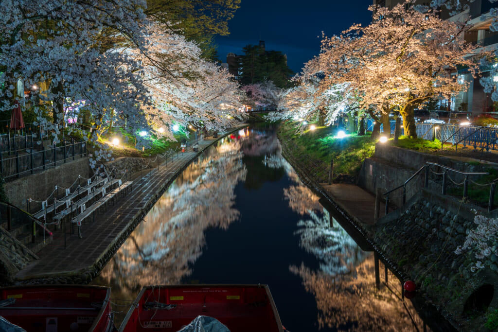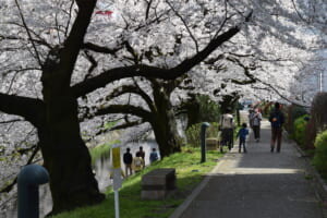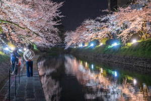 夕暮れから夜にかけてはライトアップが行われ、水面に映る桜の姿がよりいっそう幻想的に。お散歩するだけで、春の気配に心がほどけていきます。