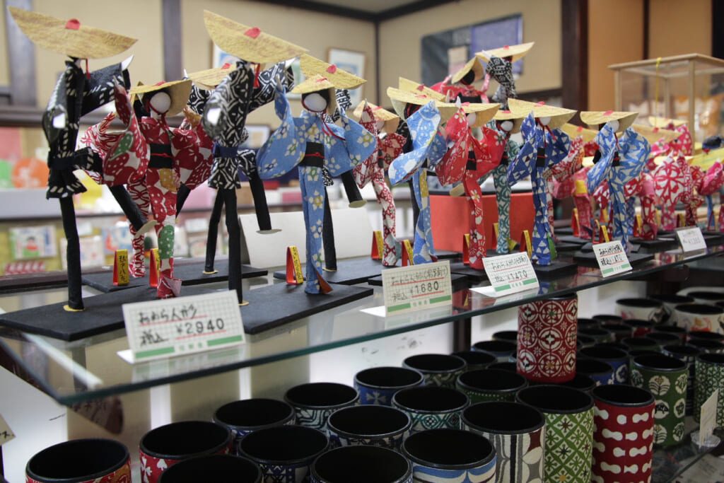 その八尾和紙の魅力をまるごと体感できるのが、桂樹舎・和紙文庫。廃校になった山あいの分校を、井田川沿いに移築した建物の中には、世界各地の紙や紙製品・民芸品がずらりと並び、「世界の紙の博物館」としての表情も。八尾和紙を使った日用品や小物も豊富にそろい、気に入ったものはその場で購入できます。