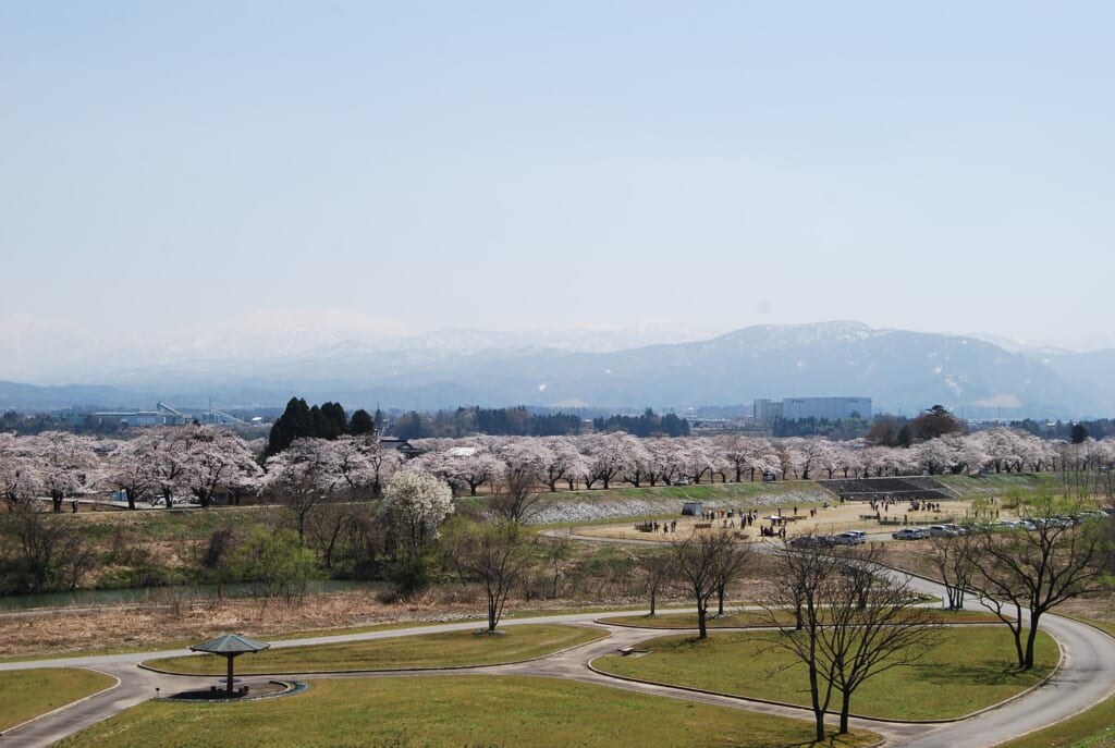 神通川さくら堤と塩の千本桜 じんづうがわさくらづつみとしおのせんぼんざくら