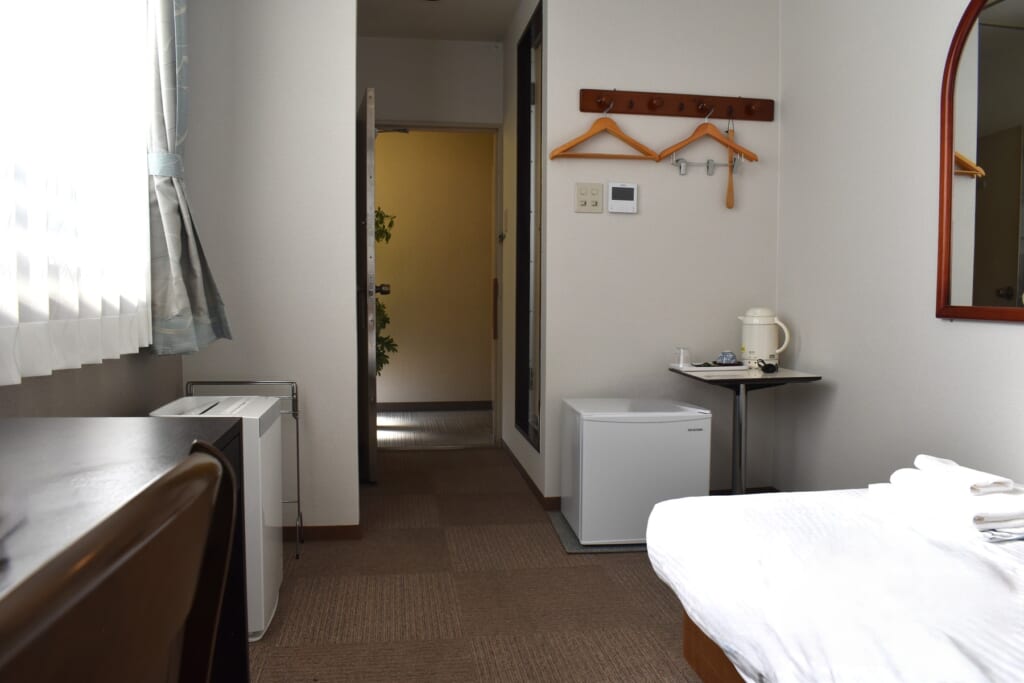 館内には朝風呂も楽しめる大浴場があり、全室Wi-Fi完備で長期滞在にも向きます。