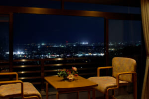 ロビーやお風呂から富山平野・富山湾を見渡す開放感が魅力で、展望大浴場や露天風呂で“景色ごと癒される”滞在が叶います。