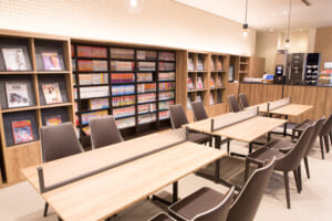 館内には宿泊者専用ラウンジがあり、コーヒーなどのフリードリンクやコミック等のサービスも用意。