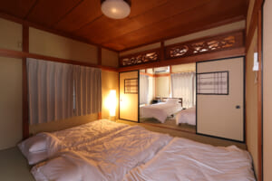 2階建て一軒家を貸切で利用でき、個室3部屋・最大6名まで宿泊可能。